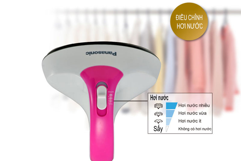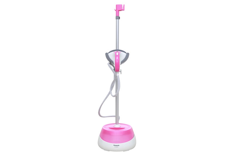 Bàn ủi hơi nước đứng Panasonic màu hồng trang nhã, nổi bật, thiết kế kiểu bàn ủi hơi nước đứng cao gọn, ủi đồ dễ dàng ngay trên móc treo, không cần dùng cầu ủi