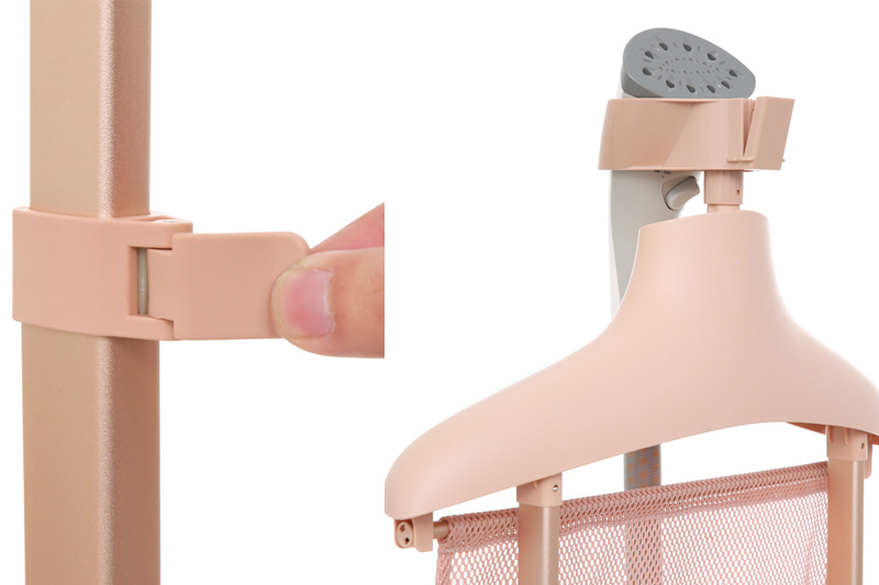 Thiết kế với 2 thanh nâng chắc chắn có thể thay đổi chiều cao và móc 3D tiện dụng, bàn ủi dễ dàng sử dụng với nhiều kích cỡ và chất liệu quần áo