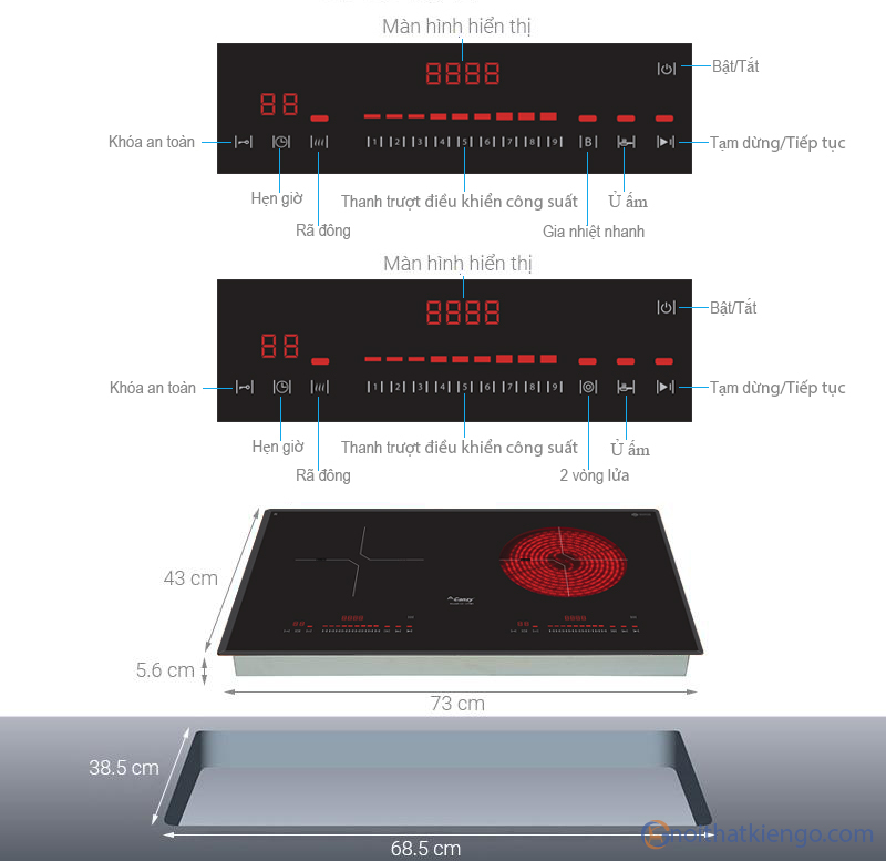 Kích thước mặt bếp 730x430mm