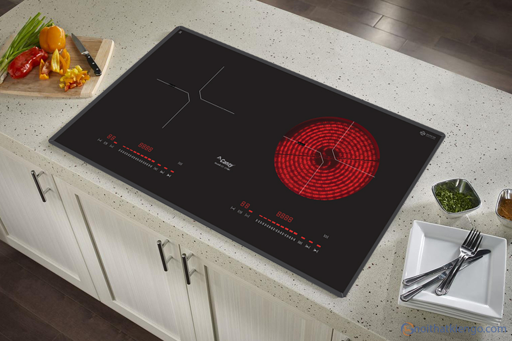 - Bếp từ hồng ngoại được thiết kế mặt kính đen sang trọng, hạn chế bám bẩn.Thiết kế âm 2 vùng nấu điều khiển riêng biệt, gồm 1 vùng nấu bếp từ và 1 vùng nấu hồng ngoại sử dụng linh hoạt, đáp ứng tính tiện dụng phục vụ tốt nhu cầu nấu nướng của gia đình.