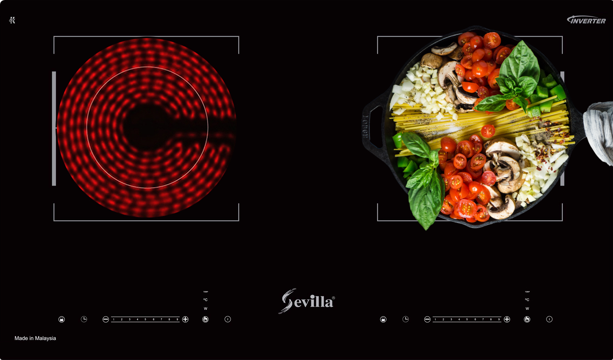 Bếp điện từ Sevilla SV-M21S được tích hợp chức năng tự nhận diện vùng nấu, khi ta đặt nồi lên 1 trong 2 vùng nấu sau đó ấn nút khởi động bếp sau thời gian 1-2 giây bếp sẽ tự động tìm vùng nấu đã có nồi, ta chỉ việc điều chỉnh mức công suất to nhỏ theo ý muốn mà không phải thao tác chọn vùng nấu như bếp thông thường. Công nghệ Inverter được áp dụng trên bếp điện từ Sevilla SV-M21S có khả năng phản ứng thay đổi công suất theo điều khiển ngay tức thì, khi người dùng điều chỉnh tăng giảm nhiệt độ đun nấu, bếp điều chỉnh thay đổi tức thì về mức nhiệt độ mong muốn.