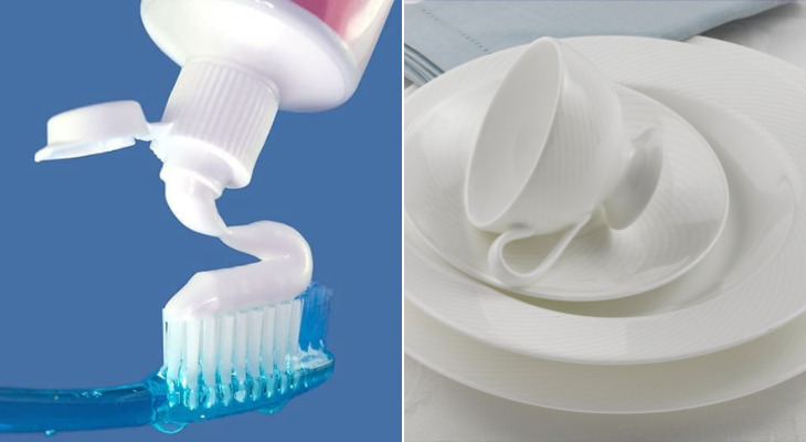 Trong kem đánh răng có chứa những thành phần hóa học có tác dụng mài mòn, tẩy trắng và tạo bọt nên có thể giúp bạn làm sạch vết ố bám trên chén bát sứ một cách nhanh chóng.