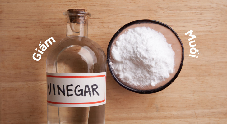 Giấm là một chất có tính axit, giúp làm sạch được nhiều đồ dùng khác nhau. Muối cũng là một nguyên liệu quen thuộc để rửa sạch mọi chất bẩn trên thực phẩm và đồ vật. Vì vậy, hỗn hợp giấm và muối có tác dụng rất tốt để tẩy trắng, làm sạch chén bát bị ố vàng.
