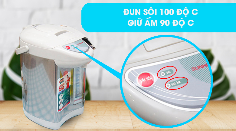 Bình thủy điện có thể đun sôi ở mức nhiệt 100 độ C và giữ ấm nước ở 2 mức 90 độ C
