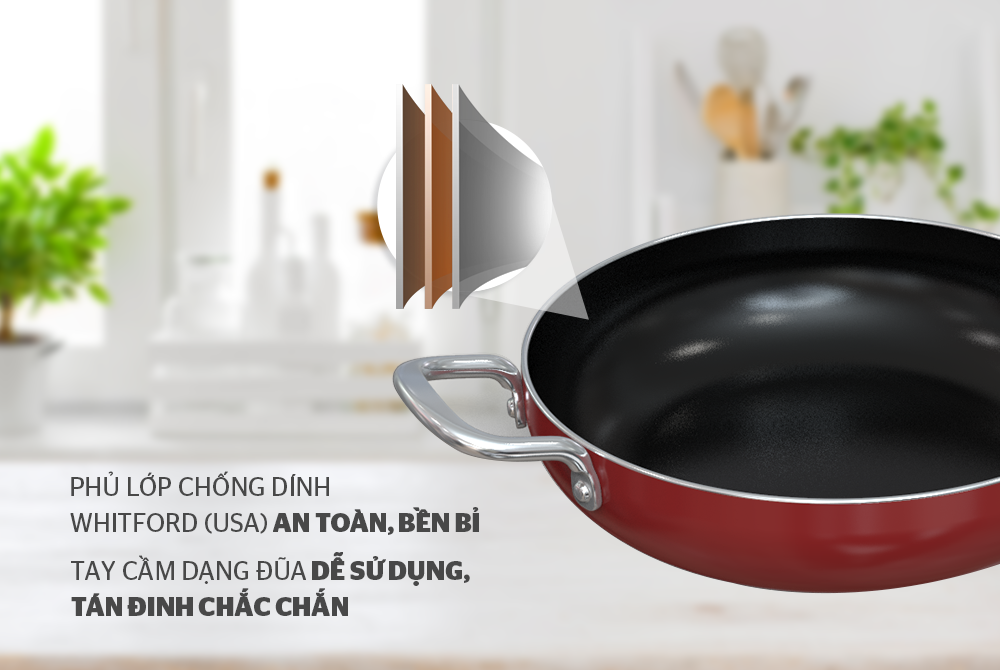 Lòng chảo trơn nhẵn, được phủ lớp chống dính Whitford (USA) ít bám dầu, có độ bền cao, không dễ bong tróc như các hãng khác.