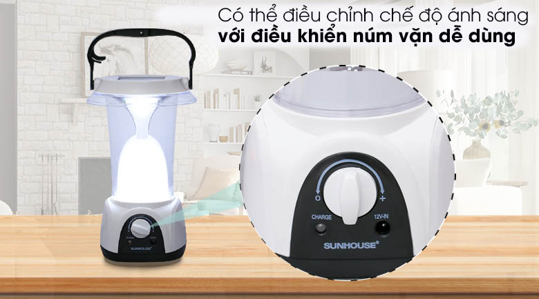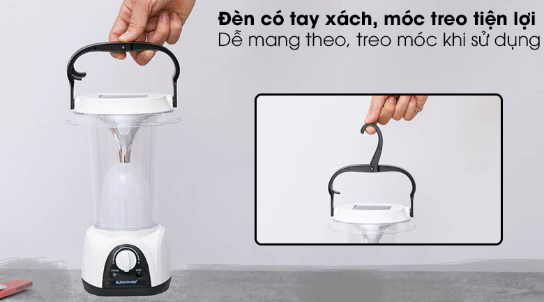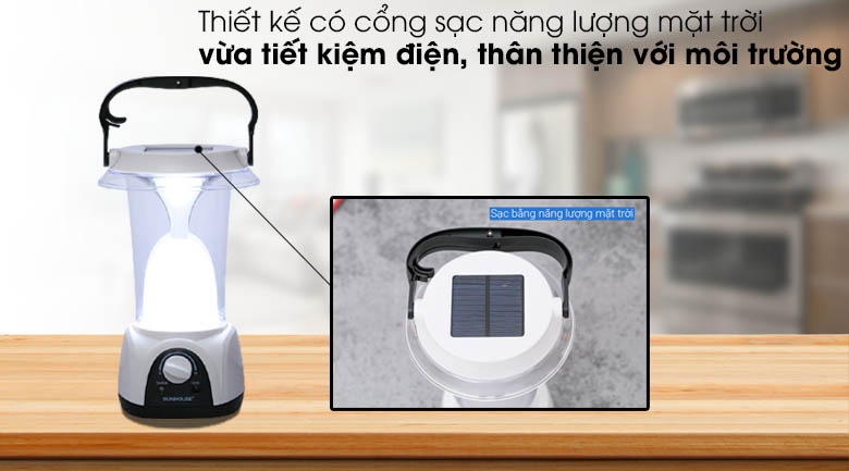 Đèn sạc năng lượng mặt trời Sunhouse, thiết kế gọn gàng, kiểu dáng nhẹ nhàng, trang nhã, tiện dùng cho cả không gian gia đình hay sử dụng ngoài trời