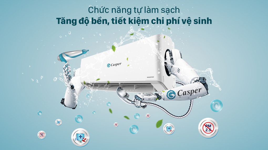 Máy lạnh Casper còn được trang bị chức năng tự làm sạch, giúp bạn tiết kiệm được chi phí vệ sinh máy lạnh định kỳ.