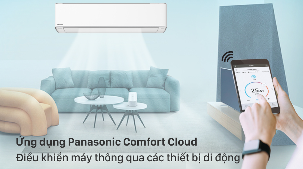Chiếc điều hòa này có thể được điều khiển từ xa qua ứng dụng Panasonic Comfort Cloud trên điện thoại. Với ứng dụng này, bạn có thể điều khiển chức năng của máy như một chiếc remote thông thường.
