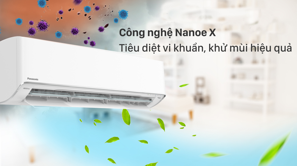 Ngoài Nanoe G, điều hòa Panasonic còn được bổ sung thêm công nghệ Nanoe X giúp loại bỏ đến 5 loại mùi hôi khó chịu như: mùi mồ hôi, mùi ẩm mốc, khói thuốc, mùi vật nuôi và thức ăn nướng.