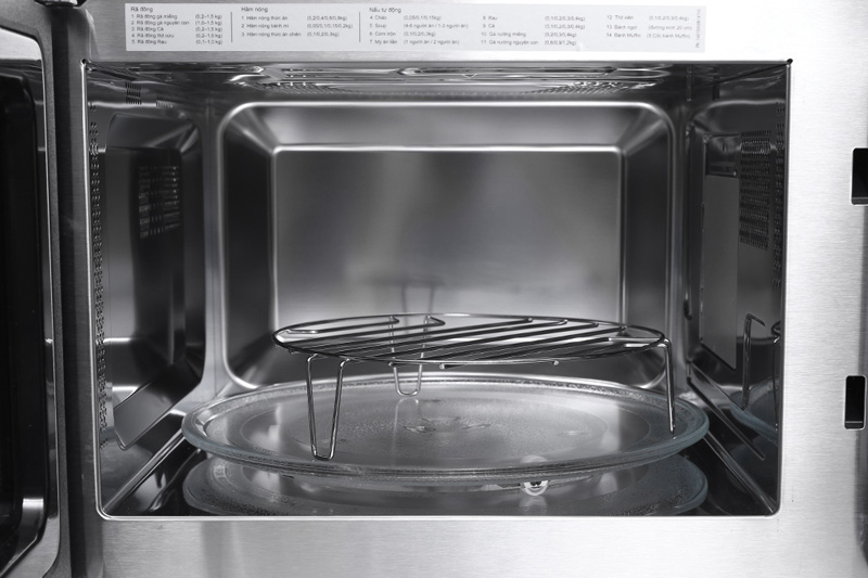 Lò vi sóng đa chức năng: nấu, hâm nóng, rã đông với công suất vi sóng tới 800W, cộng thêm chức năng nướng đối lưu tiện dụng với công suất nướng đến 1000W