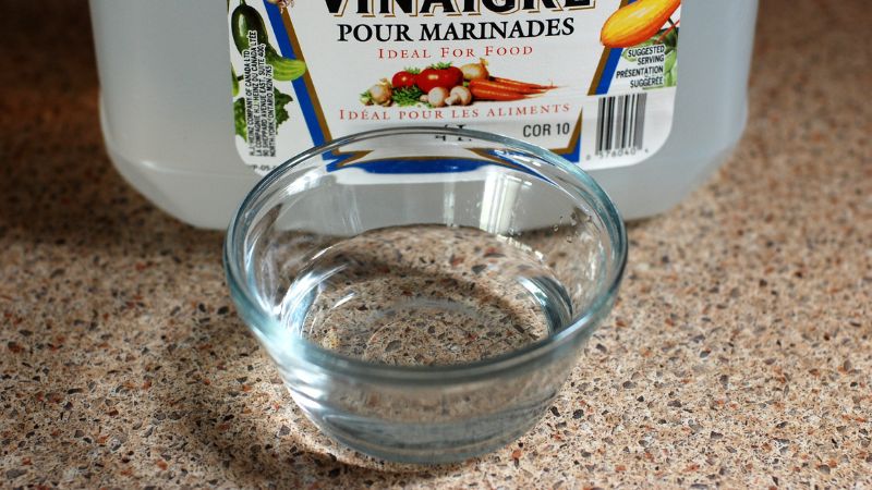 Bước 1 Sau khi đã làm sạch máy bằng thuốc tẩy thì bạn cho giấm và baking soda vào lồng máy giặt.