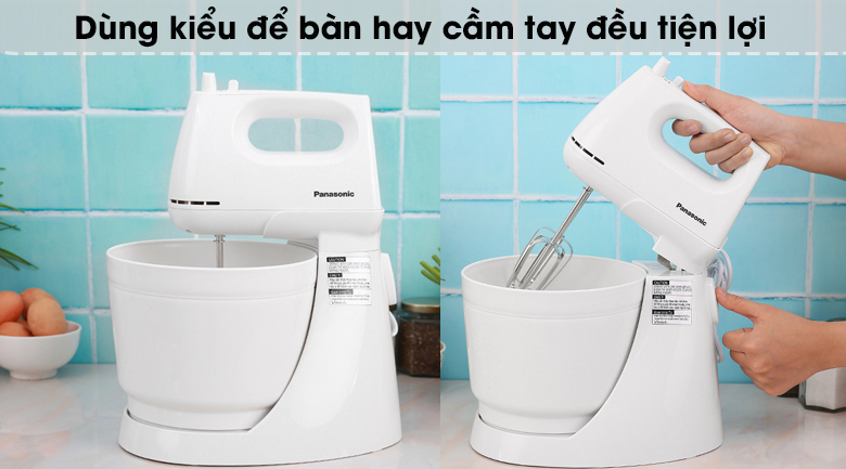 Có thể sử dụng kiểu để bàn hoặc cầm tay linh hoạt, đáp ứng nhu cầu của mọi người dùng. Đặc biệt, được thiết kế cải tiến, chống mỏi tay khi dùng lâu (trong trường hợp bạn nhấc máy ra khỏi thân trụ để sử dụng đánh trộn nguyên liệu).