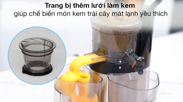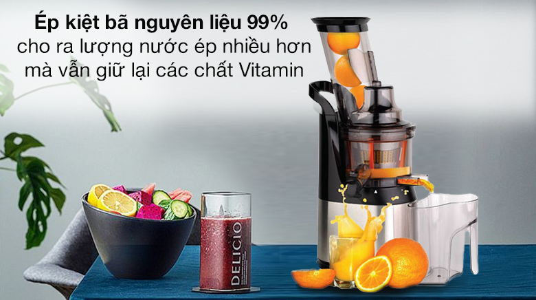Ép kiệt bã nguyên liệu đến 99%, cho ra lượng nước ép nhiều hơn, giữ được các dưỡng chất Vitamin trong hoa quả