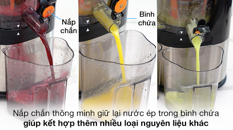 Nắp chắn thông minh sẽ giữ lại nước ép trong bình chứa, giúp bạn có thể kết hợp nhiều nguyên liệu với nhau, thoải mái sáng tạo ra những công thức riêng theo sở thích