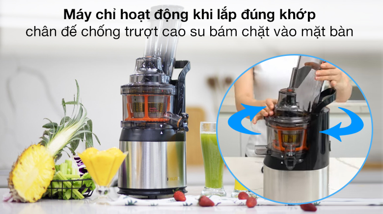 Máy chỉ hoạt động khi cối xay được lắp đúng khớp, đảm bảo an toàn và tăng tuổi thọ cho máy