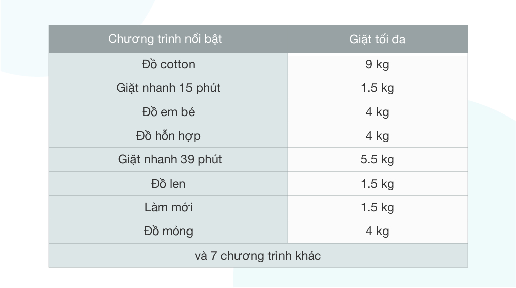 Khối lượng giặt 9 Kg phù hợp cho gia đình từ 3 - 5 thành viên