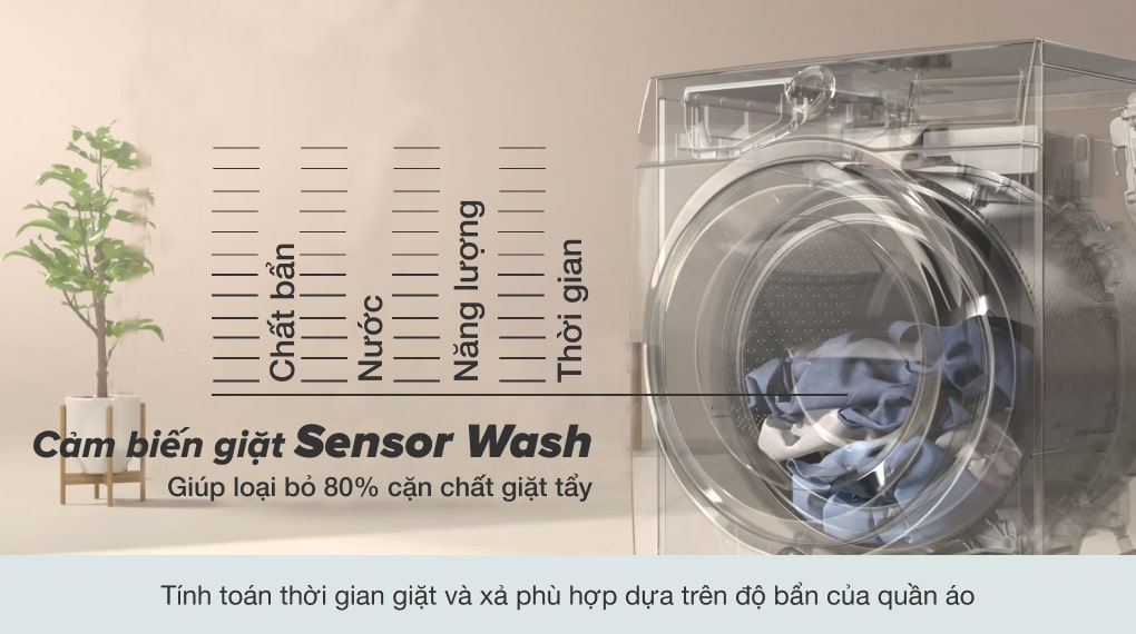 Loại bỏ đến 49 loại vết bẩn nhờ công nghệ Sensor Wash với cảm biến AI