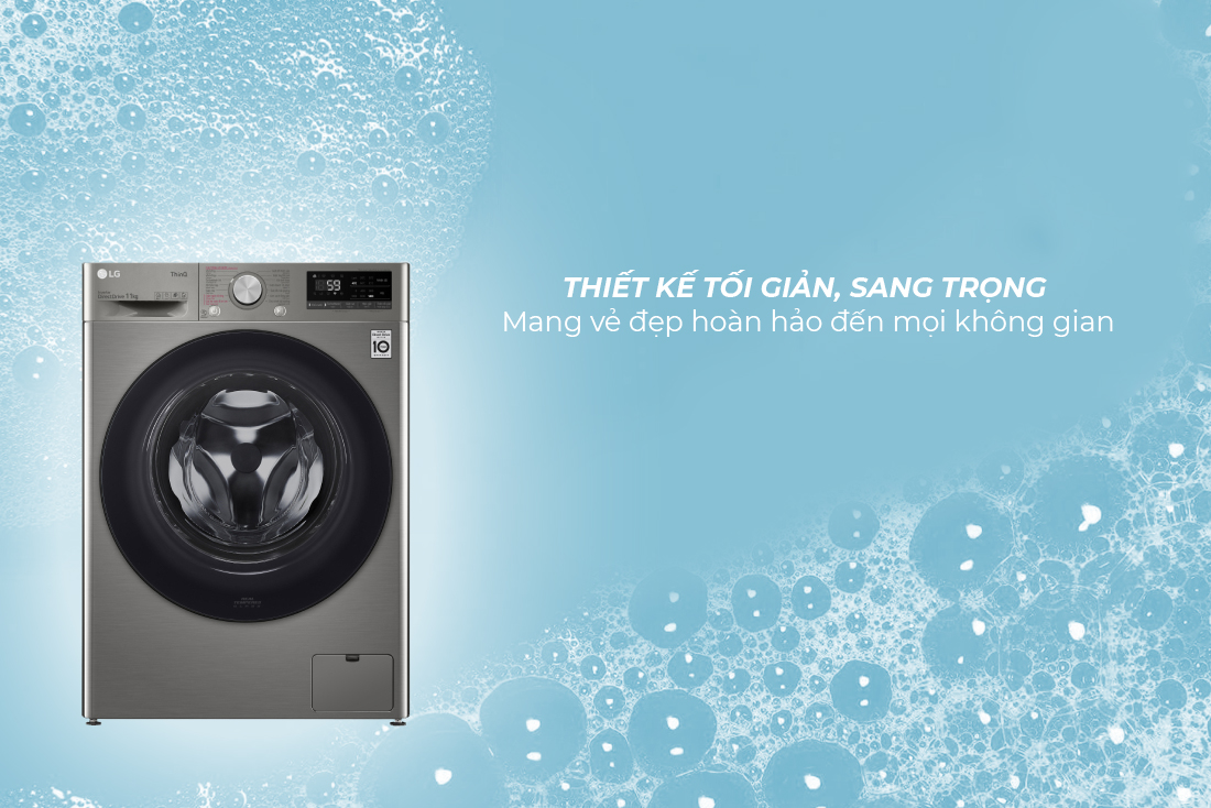 Máy giặt LG Inverter 11 kg FV1411S4P sở hữu thiết kế tối giản với vỏ ngoài cứng cáp kết hợp gam màu xám thời thượng chắc chắn sẽ mang đến vẻ đẹp sang trọng cho mọi không gian nội thất. Lồng giặt được làm bằng chất liệu thép không gỉ có độ bền cao hỗ trợ cho chu trình giặt diễn ra hiệu quả.