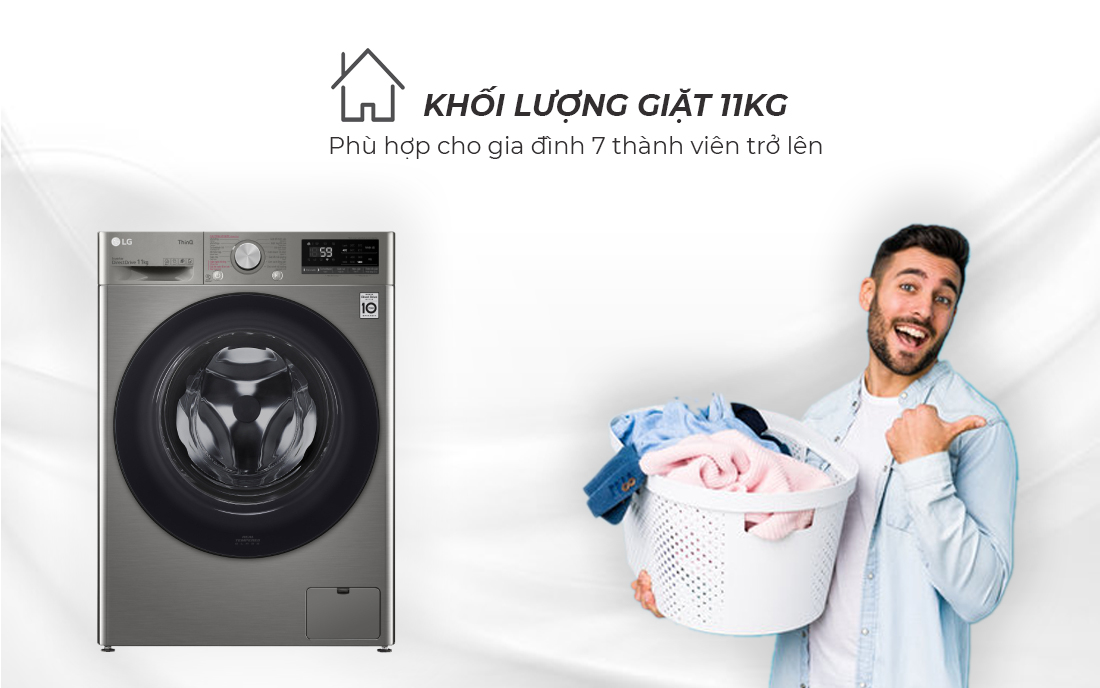 Thích hợp cho gia đình trên 7 người với khối lượng giặt 11Kg