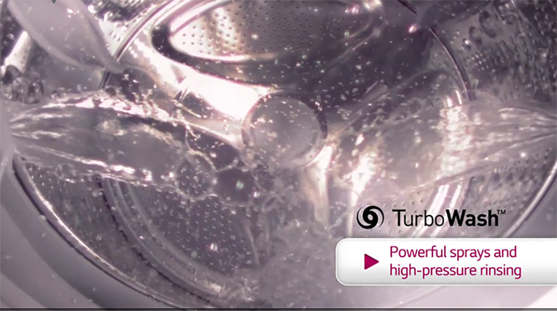 Giặt sạch nhanh hiệu quả cùng tính năng TurboWashTM với 2 vòi xả nước mạnh mẽ kết hợp lồng giặt xoay chuyển linh hoạt giúp các phân tử nước thẩm thấu nhanh cùng chất giặt tẩy vào từng sợi vải mang đến hiệu quả giặt, xả mạnh mẽ đồng thời hỗ trợ tiết kiệm chi phí điện, nước.