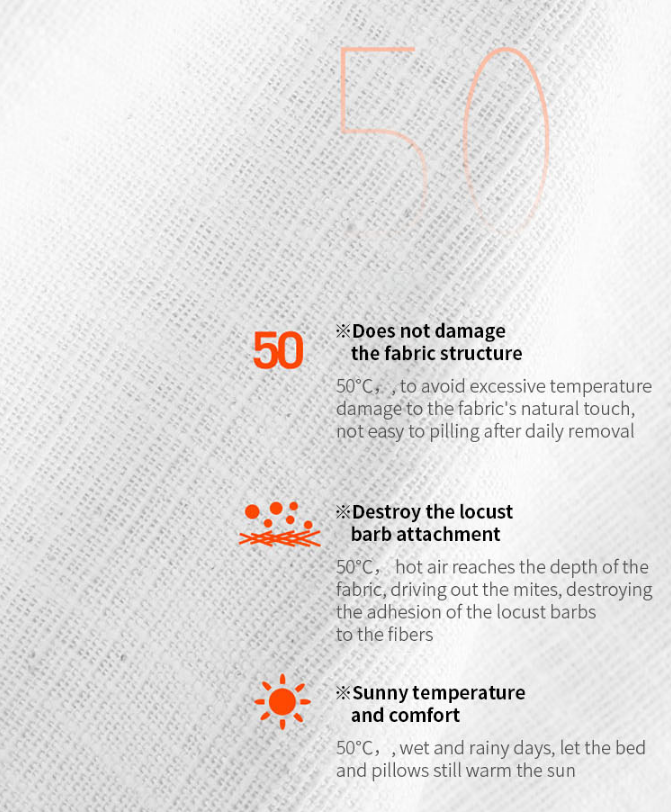 - Máy tạo ra luồng khí nóng 50 độ C giúp sấy khô giường đệm vào những ngày ẩm nồm.