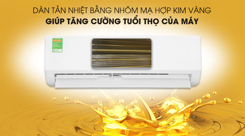 Dàn tản nhiệt của dàn nóng và dàn lạnh được phủ bởi lớp hợp kim vàng nhằm giúp tăng khả năng chịu đựng, chống chọi với điều kiện khắc nghiệt của môi trường, hạn chế sự ăn mòn.
