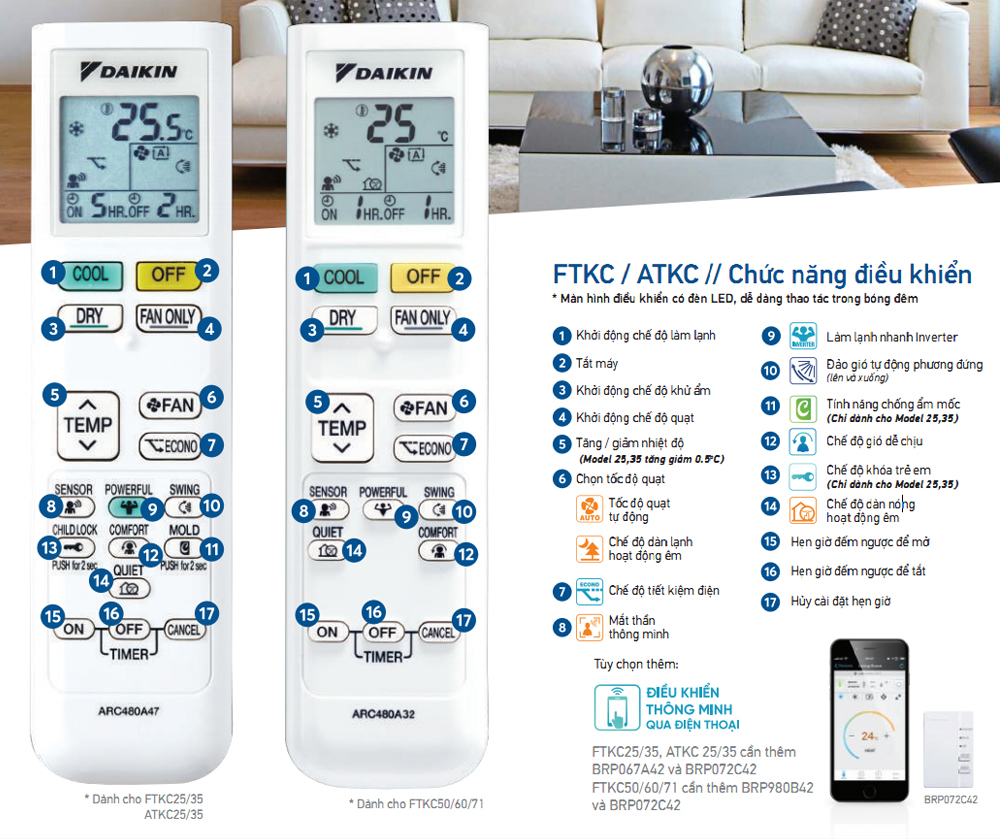 *Tính năng này có ở các dòng FTKM50/60/71, FTKC, ATKC