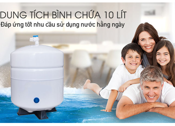 Bình chứa nước dung tích tới 10 lít đáp ứng tối ưu nhu cầu nước cho gia đình, nhóm người có đông thành viên. Bạn có thể uống nước được ngay sau khi lọc mà không cần đun sôi lại nước.