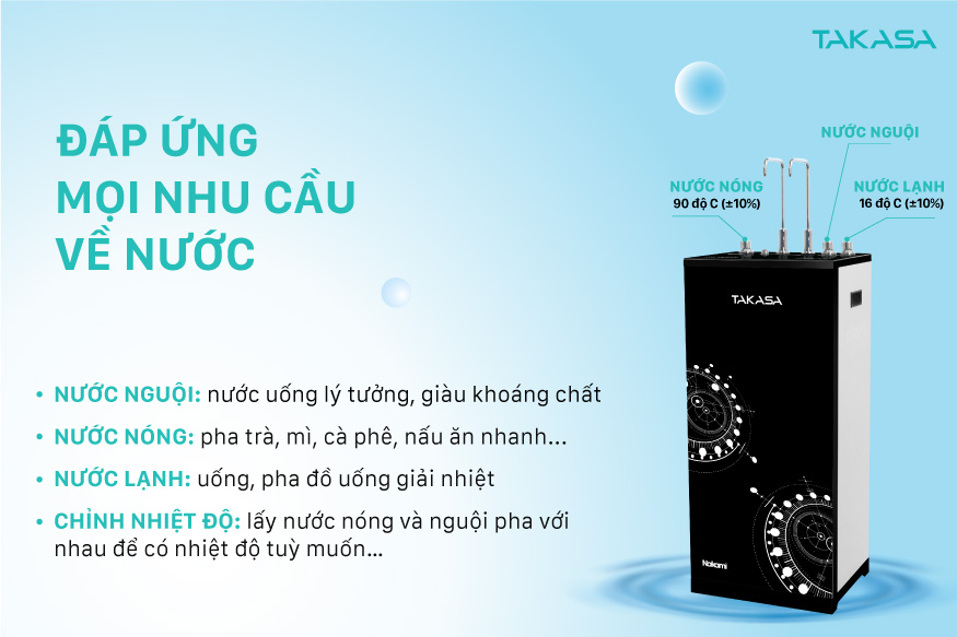 Máy lọc nước RO nóng nguội Takasa TAW-42210H với 2 chế độ nóng nguội đa nhiệm, đem lại dòng nước sạch tươi mát tốt cho sức khỏe phù hợp sử dụng cho gia đình, nhà trường, bệnh viện hay tại các văn phòng làm việc.