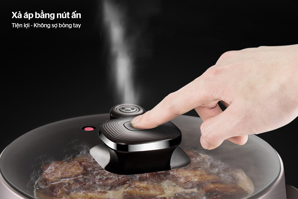 Đặc biệt, thiết kế 2 van xả áp thông minh dạng nút ấn trên nắp nồi sẽ giúp người dùng thuận tiện hơn khi sử dụng, không lo bị bỏng hơi nếu bất cẩn.