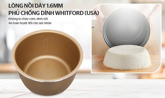 | Chất liệu lòng nồi: | Chống dính Whitford USA |