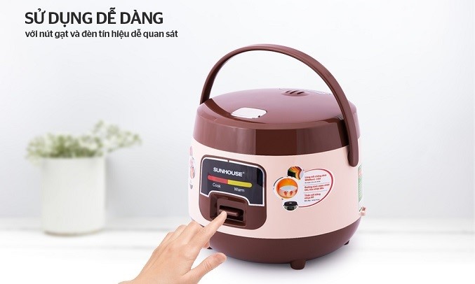 Nồi cơm điện Sunhouse có 2 chế độ "Nấu - Cook" và "Hâm nóng - Warm" điều chỉnh bằng nút gạt đơn giản, có đèn báo hiệu dễ quan sát. Nắp nồi cũng được mở dễ dàng với 1 nút ấn phía trên. Bên cạnh đó, các bộ phận của nồi rất dễ tháo lắp nên việc vệ sinh cũng trở nên đơn giản hơn nhiều.