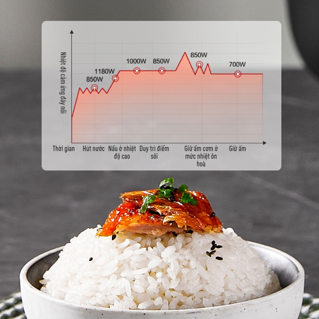 - Kiểm soát nhiệt độ chính xác bằng các cảm biến thông minh và bộ biến tần tích hợp để đảm bảo nhiệt độ nấu thích hợp cho cơm dẻo và ngon.