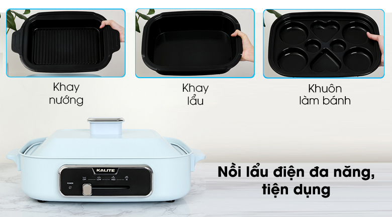 Nồi lẩu điện đa chức năng sử dụng nấu lẩu, chiên nướng, làm bánh tiện dụng