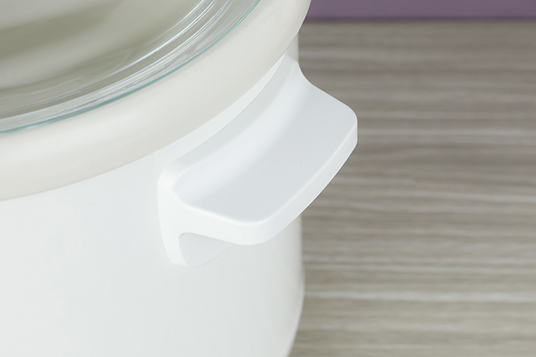- Nồi nấu chậm Panasonic màu trắng trang nhã, thích hợp với nhiều không gian bếp, có tay cầm 2 bên để bạn dễ di chuyển nồi.