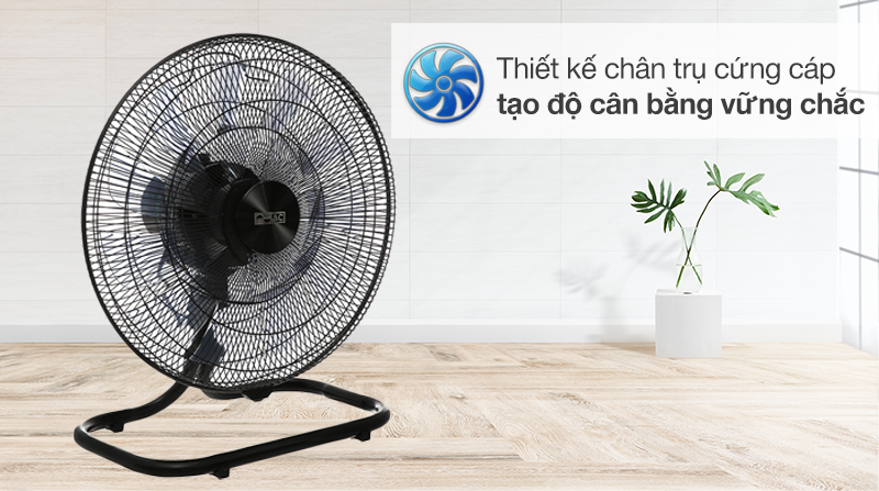 Quạt sàn có kiểu dáng độc đáo với phần chân trụ dạng khung hình chữ nhật cứng cáp, kết hợp với đế chống trượt, tạo độ cân bằng vững chắc giúp quạt không bị nghiêng, đổ. Quạt có kích cỡ nhỏ gọn, màu sắc tối giản hài hòa, nên phù hợp để đặt ở mọi vị trí trong nhà.