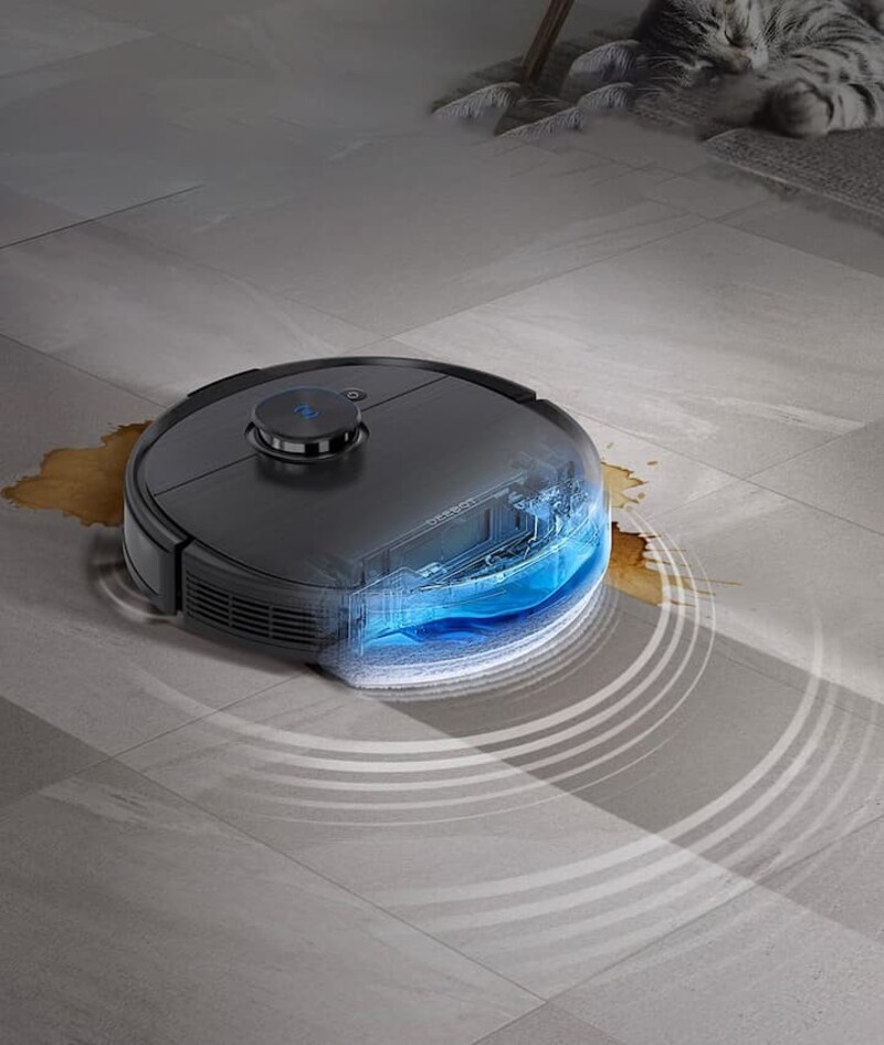 Bên cạnh lực hút mạnh mẽ, khả năng lau sàn của Deebot T10 cũng vô cùng ấn tượng. Hệ thống OZMO cho phép robot vừa rung tạo lực ép với sàn vừa lau sàn một cách mạnh mẽ với tần suất lên đến 600 lần/phút. Chính vì thế dễ dàng đánh bật những vết bẩn cứng đầu trên mặt sàn nhà bạn. Robot hút bụi Ecovacs Deebot T10 còn có khả năng nhận biết thảm, tự động tránh né hoặc dừng chế độ lau nhà khi làm việc trên thảm, hơn nữa Deebot T10 còn đồng thời tăng lực hút lên mức tối đa khi làm việc trên thảm để có thể làm sạch bụi bẩn bám sau trong.