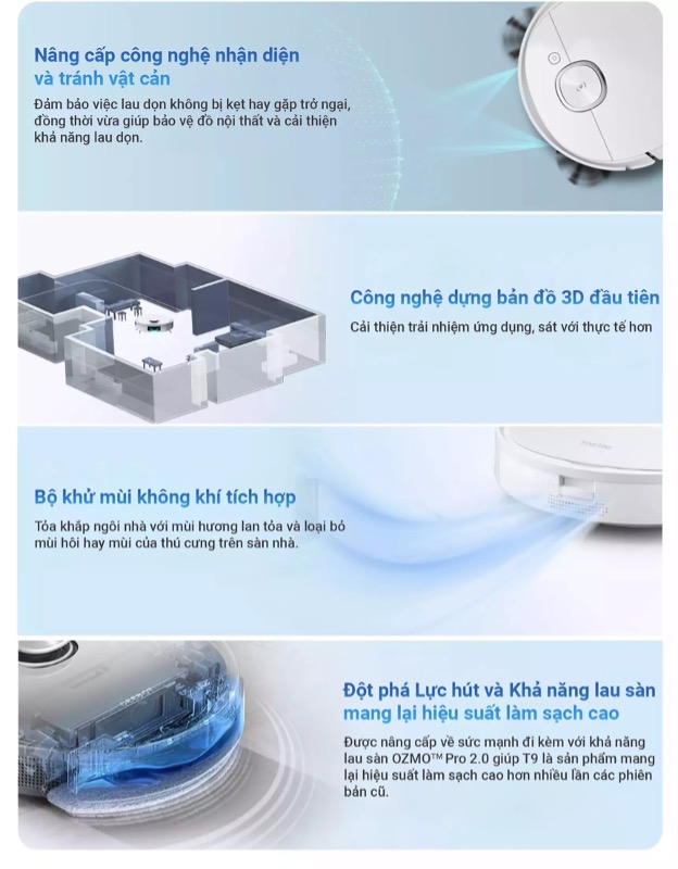 – Tương thích với đốc sạc hút rác tự động nên DEEBOT T9 Plus giúp bạn không phải động