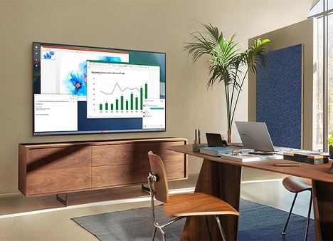 Công Nghệ Q-Symphony giúp cho việc liên kết giữa tivi Samsung và loa thanh Samsung trở nên hoàn hảo hơn, thăng hoa hơn cùng những thanh âm và hình ảnh tuyệt vời nhất.