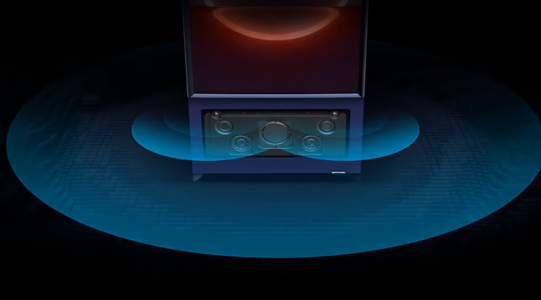 Dàn loa được thiết kế ẩn bên trong chân đế truyền tải chất âm đa chiều cuốn hút, âm trầm sâu lắng cho bạn hoàn toàn tập trung trong thế giới âm thanh sôi động do tivi mang lại.