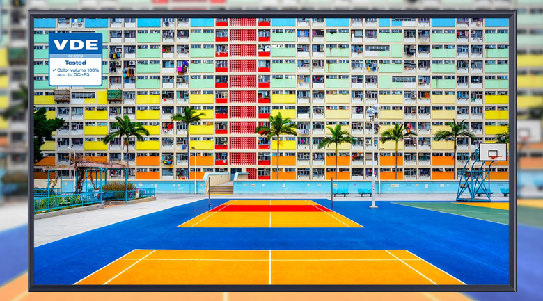 Smart Tivi Màn Hình Xoay The Sero QLED Samsung 4K 43 inch QA43LS05T được chứng nhận Verband Deutscher Elektrotechniker (VDE) cấp bởi hiệp hội thử nghiệm và chứng nhận uy tín thế giới về khả năng tạo ra 100% dải màu đo theo tiêu chuẩn DCI-P3.