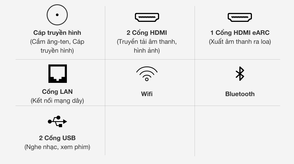 - Cổng xuất âm thanh: 1 cổng eARC (ARC)