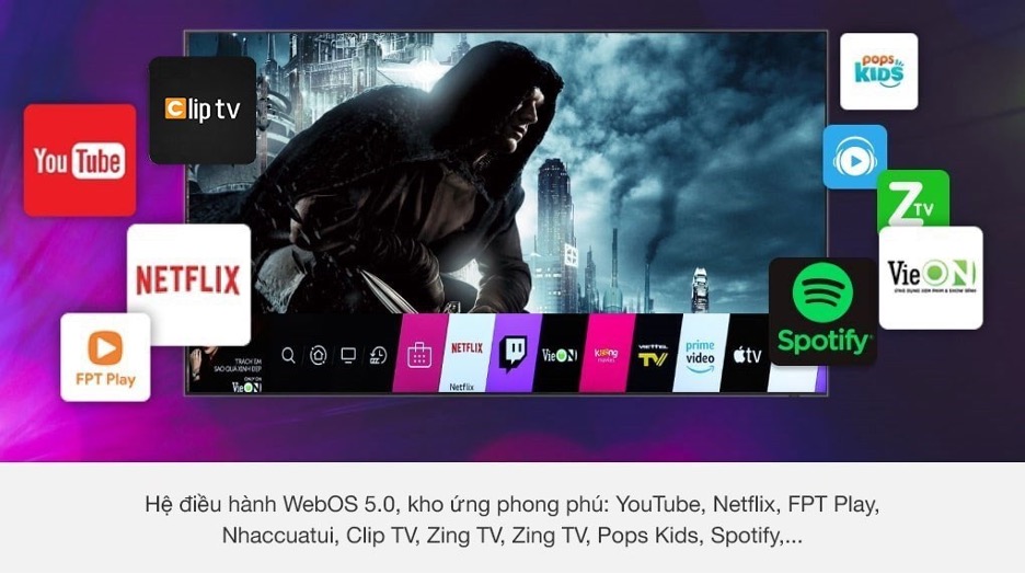 Smart tivi LG sở hữu hệ điều hành WebOS 5.0 hiện đại với giao diện đơn giản dễ dùng cùng kho ứng dụng đa dạng cài đặt sẵn và có thể tải về trên LG Content Store như: YouTube, Netflix, Galaxy Play,... cho bạn những giây phút giải trí thật tuyệt vời.