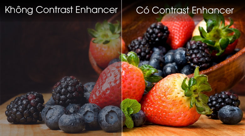 Công nghệ Contrast Enhancer giúp tăng cường độ tương phản hình ảnh tối đa, phủ nhiều lớp sáng tối lên toàn bộ màn hình giúp từng khu vực, vật thể trong khung hình trở nên sống động và chân thật hơn.