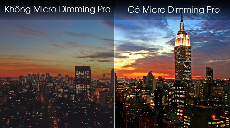 Với 3 bước nâng cấp hình ảnh về độ tương phản, màu sắc, độ nét, công nghệ tối mờ cục bộ - Micro Dimming Pro giúp tăng cường độ tương phản mang đến hình ảnh rõ nét với sắc đen sâu thẳm cùng sắc trắng tinh khiết, tái tạo chất lượng hình ảnh và sắc thái màu sắc rõ ràng hơn.