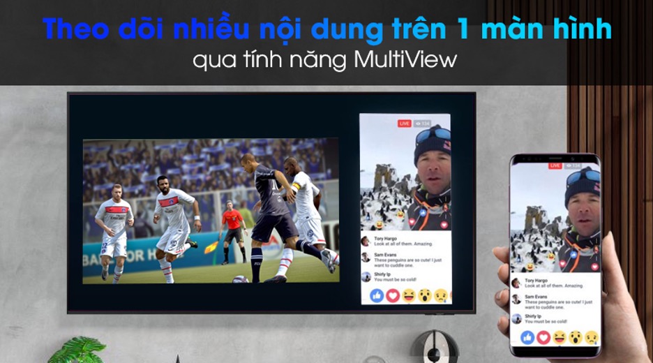 Tính năng Multi View cho phép chia sẻ màn hình để đồng thời trình chiếu nhiều nội dung yêu thích, giúp bạn nắm bắt hết các thông tin mong muốn hay chia sẻ màn hình giải trí với các thành viên khác.