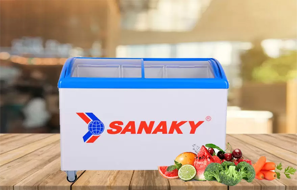 Tủ đông mặt kính cong Sanaky VH-482K thuộc dòng tủ đông nắp kính trưng bày (hay tủ kem) của hãng Sanaky cỡ nhỏ của thương hiệu Sanaky. Tủ chỉ có 1 ngăn đông với dung tích 480 lít đáp ứng được nhu cầu bảo quản cũng như trưng bày thực phẩm với số lượng ít của các cửa hàng nhỏ.