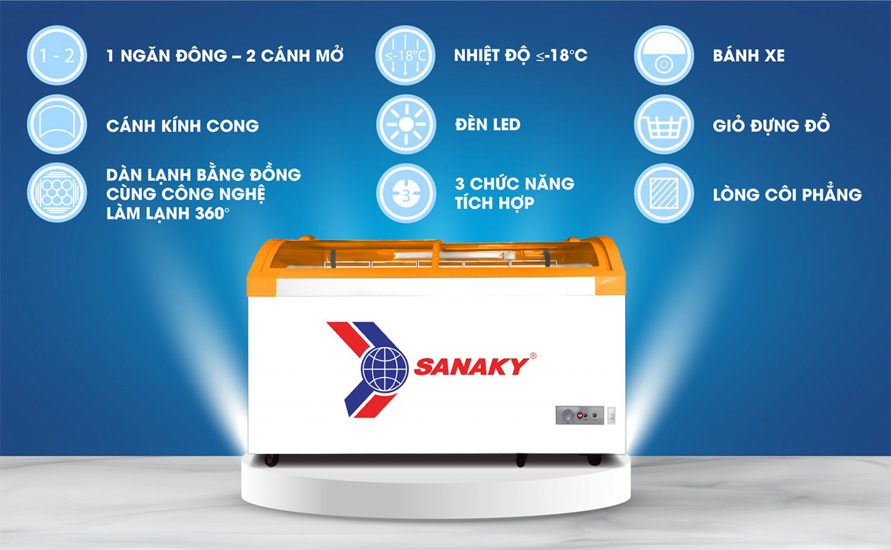 Tính năng của tủ đông Sanaky VH-4899KB mặt kính cong 350L