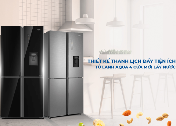 Thiết kế thanh lịch đầy tiện ích tủ lạnh Aqua 4 cửa mới lấy nước