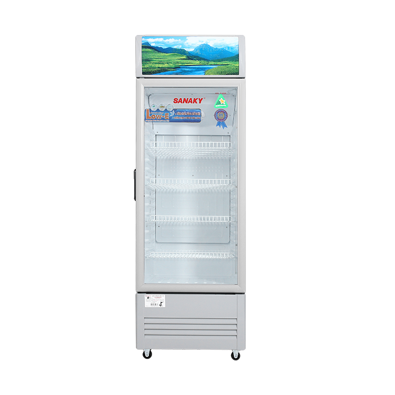 Tủ mát Sanaky 240 lít có các vỉ để thực phẩm có thể dễ dàng tháo lắp, giúp thay đổi không gian bảo quản dễ dàng và tiện lợi khi vệ sinh tủ.